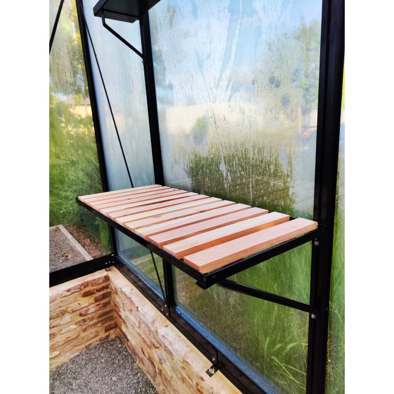 La finition en bois ajoute une touche esthétique à l'étagère et renforce sa durabilité pour que vous puissiez en profiter pendant de nombreuses années. Cette étagère est idéale pour un usage en serre de jardin, elle est solide et facile à entretenir.