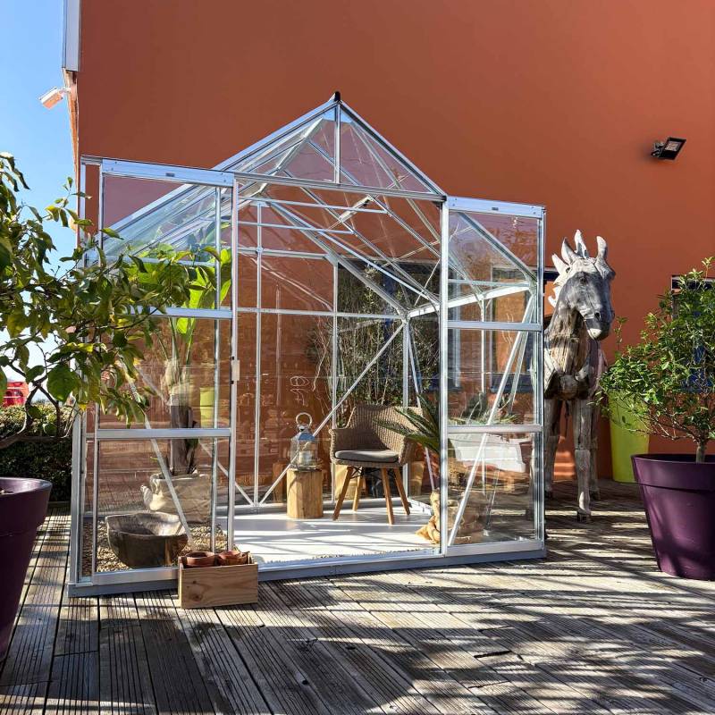 Nos serres de jardin en verre trempé 3 mm sont garanties 10 ans pour la structure en aluminium et 5 ans pour le joint de vitrage.
